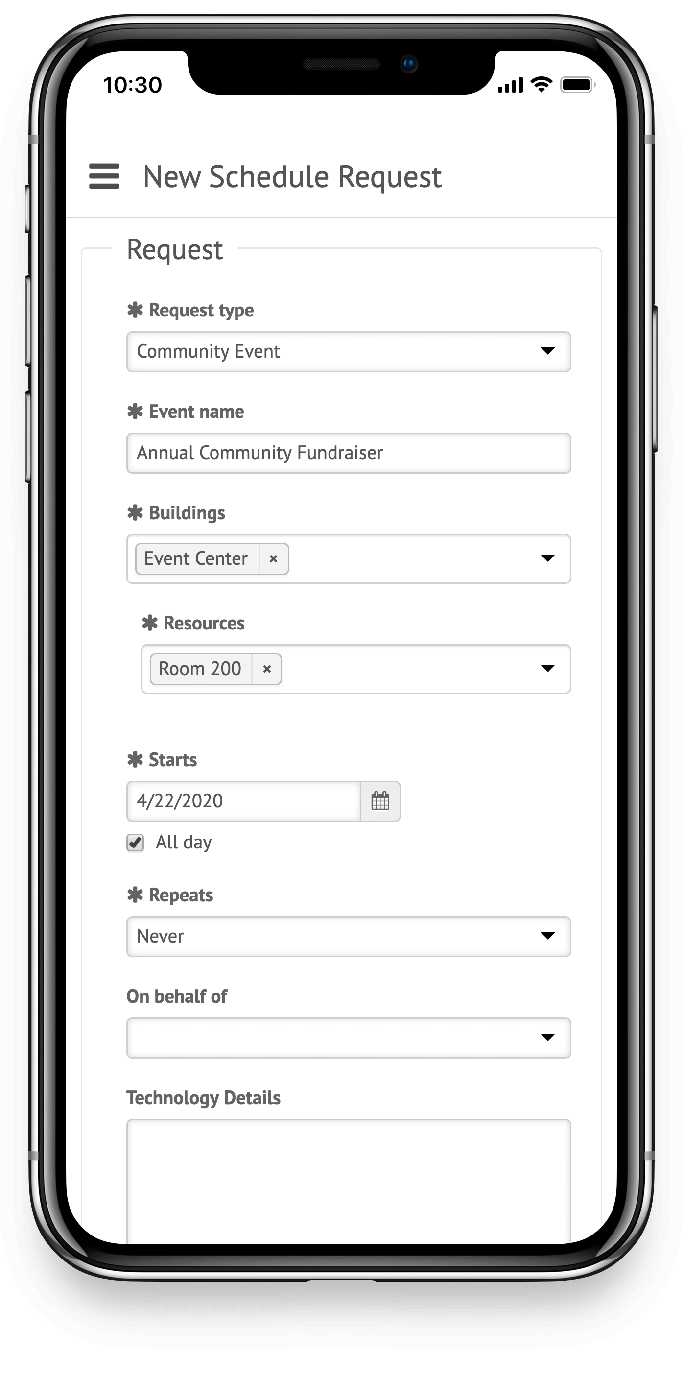 Ensure event and fundraiser success by scheduling resources, volunteers, and buildings for the date and time of your event.