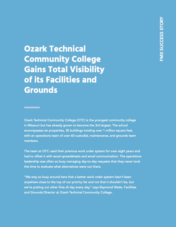 “We stay so busy around here that a better work order system hasn’t been anywhere close to the top of our priority list and not that it shouldn’t be, but we’re putting out other fires all day every day,” says Raymond Wade, Facilities and Grounds Director at Ozark Technical Community College.