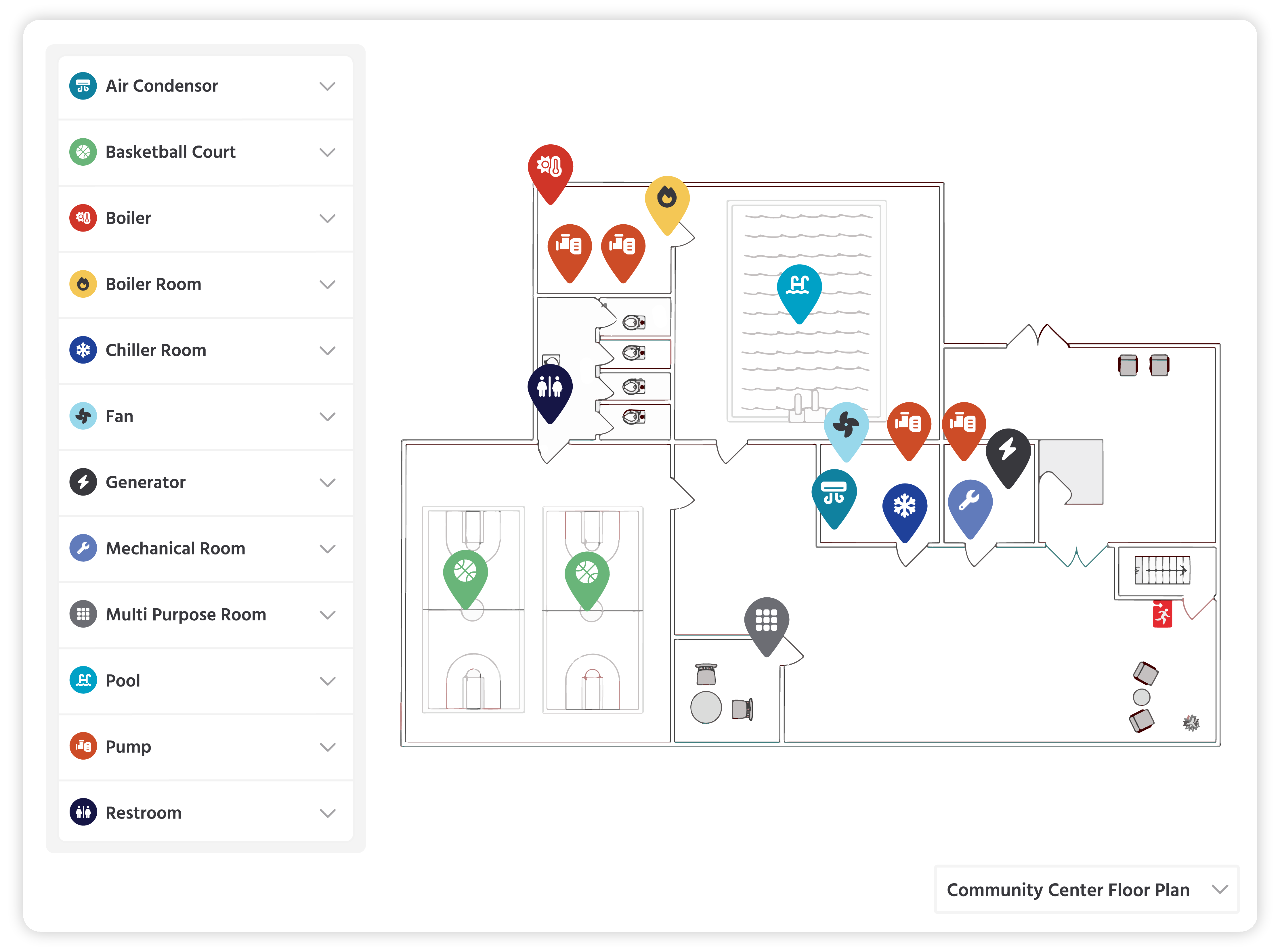 With Interactive Mapping, organizations can record the physical location of their assets, spaces, and even users to create a visual paradigm of their organization.
