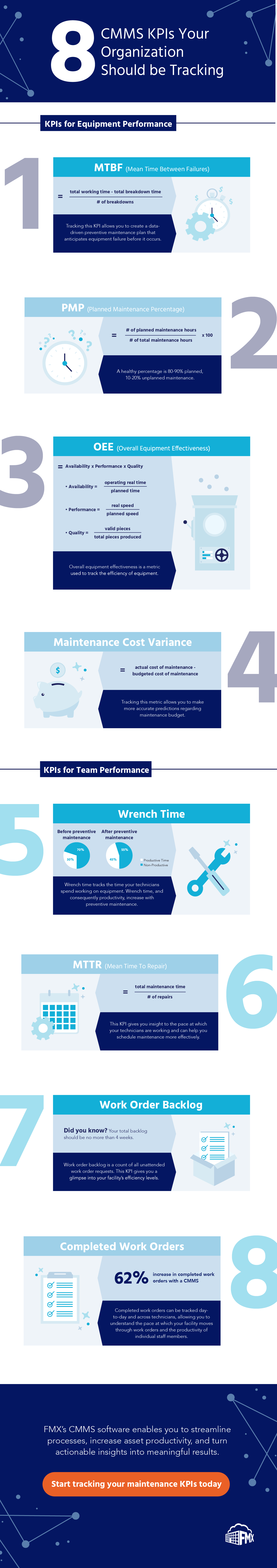 Reporting and analytics capabilities in the system make it possible to track CMMS KPIs such as those listed below, giving you insightful feedback on your facility’s performance. Use CMMS software to track these 8 KPIs and make informed maintenance decisions that take your facility to the next level. Also, use the provided industry benchmarks to gauge how your team is measuring up with other maintenance departments.